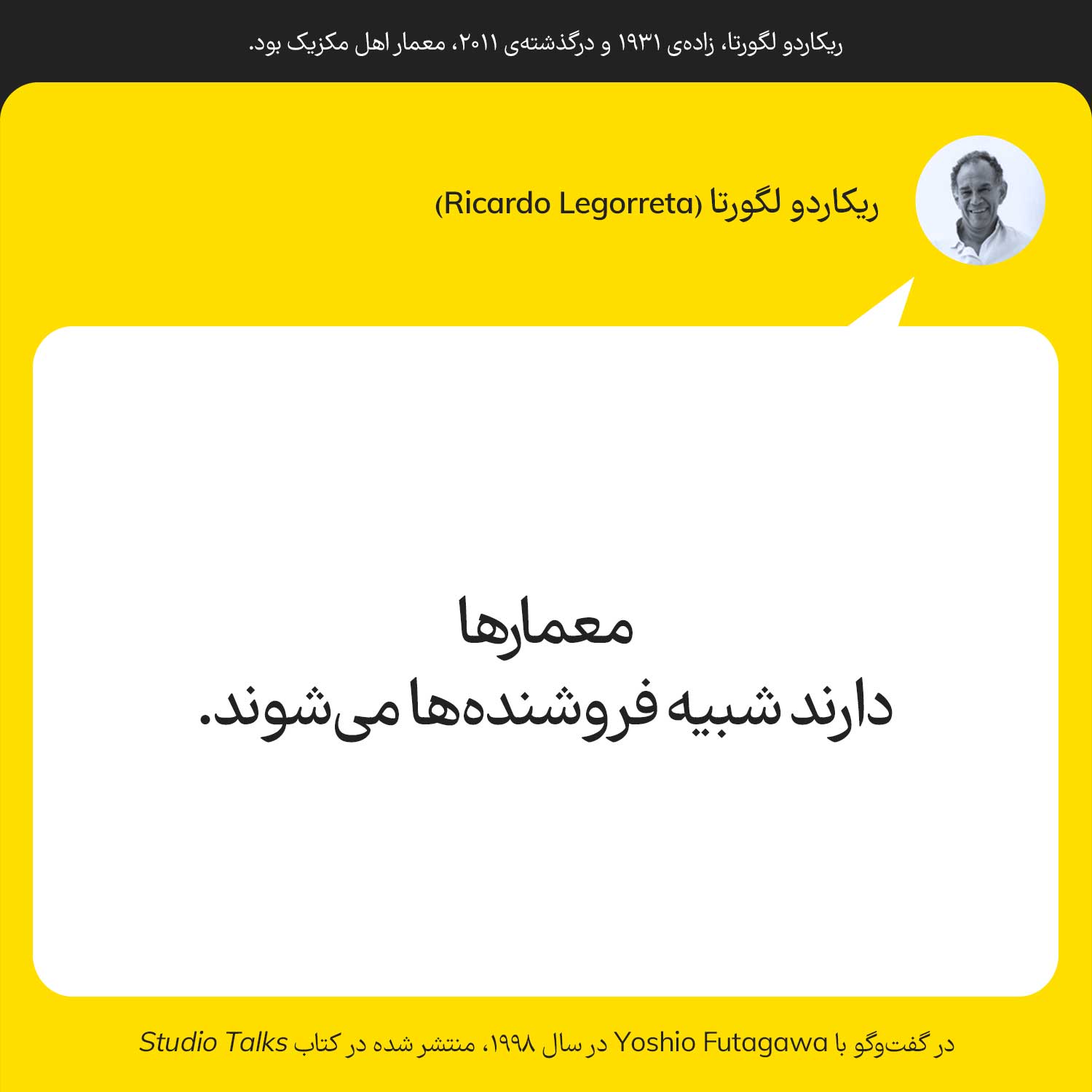 ریکاردو لگورتا، زادهی ۱۹۳۱ و درگذشتهی ۲۰۱۱، معمار اهل مکزیک بود.معمارها دارند شبیه فروشندهها میشوند.