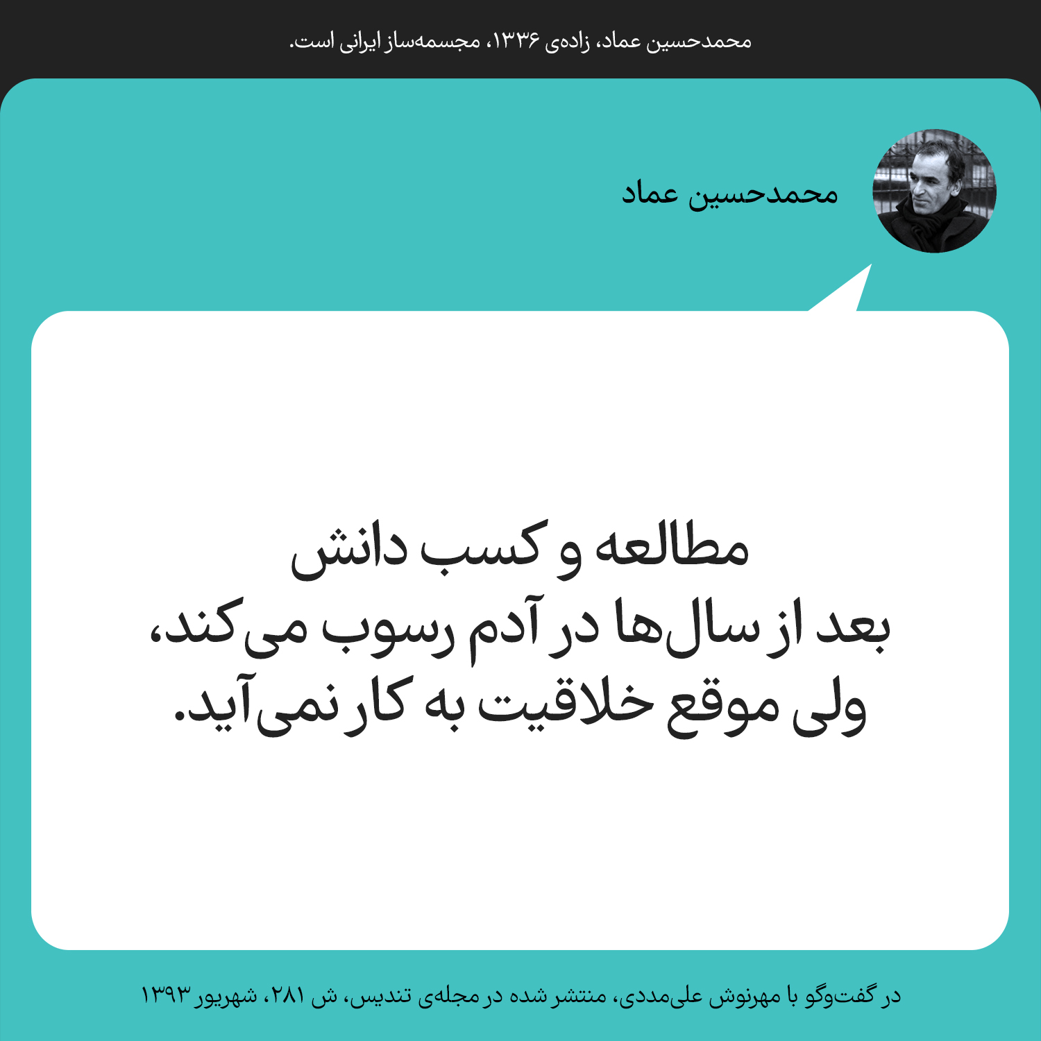 مطالعه و کسب دانش بعد از سال‌ها در آدم رسوب می‌کند، ولی موقع خلاقیت به کار نمی‌آید.